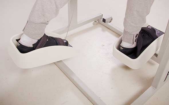 Пациент, взявшись за специальные поручни-рычаги, при помощи движений рук синхронно передвигает элементы конструкции аппарата, являющиеся опорой для нижних конечностей. Система стабилизации туловища помогает удерживать вертикальное положение, а работа рук приводит нижние конечности в движение, благодаря чему и происходит имитация ходьбы. Обращаем ваше внимание, что шаг в аппарате «Имитрон» физиологичен, что позволяет осуществлять проработку мышц и суставов ног в пассивном режиме Верхние конечности и плечевой пояс тоже активно работают, происходит тренировка мышц спины и живота,nосуществляются повороты туловища и таза. Выраженный положительный эффект достигается в борьбе с застойными процессами в пищеварительной и мочеполовой системах.